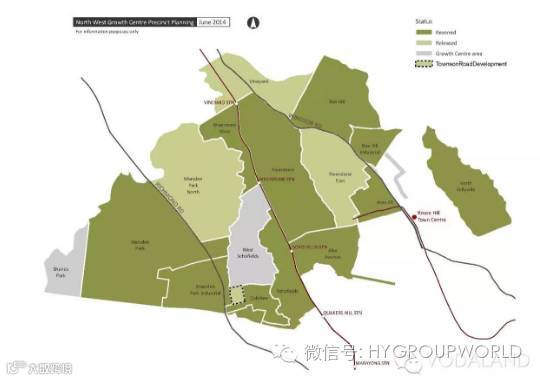 西北增长中心被划分Maesden Park、Schofield等16个区域,截止到2015年10月,North Marsden Park、Riverstone East、Vineyard这三个区域的重新规划方案已经公布但还未最终确定,Shanes Park、WestSchofield这两个区域作为暂时保留区域,其余的11个区域的新规划方案都已经确定。