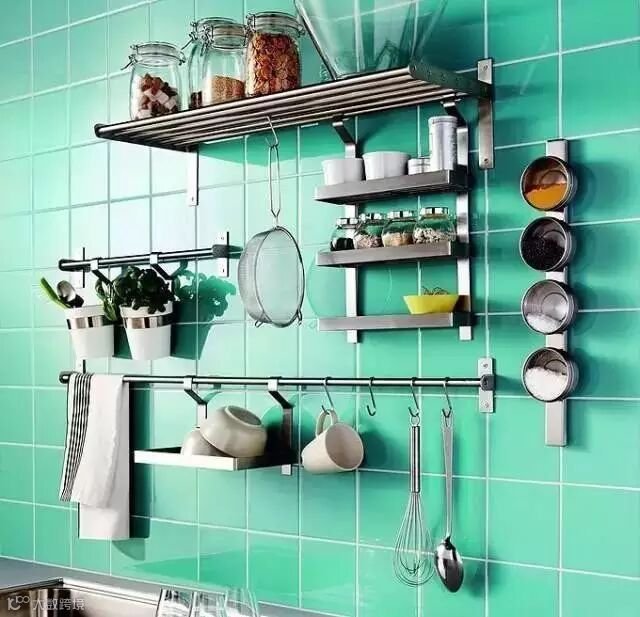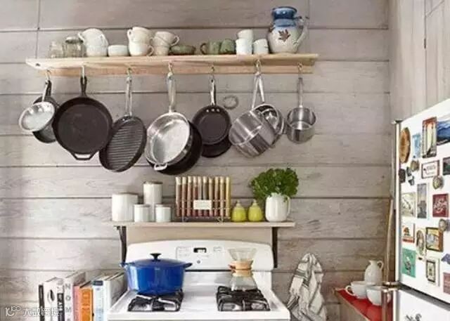 给您支的第一招就是利用厨房中未用的墙面,充分利用这个平面空间。挂、钉、或者贴都是很好的方法。