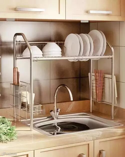 水槽上面的空间也不容小视,可以用一个厨房置物架(防水),不仅节省空间更可以让厨具方便控干水分