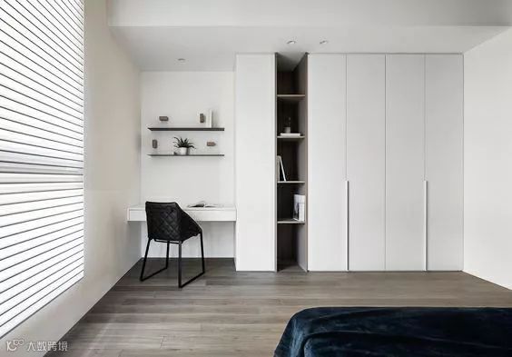 入墙式衣柜的外观可以配合屋内的装修风格,在颜色上可以选择。这样让衣柜和整个房屋更和谐,达到视觉上的统一,比如衣柜门的颜色,可以和屋内地板,床等选择同一色系