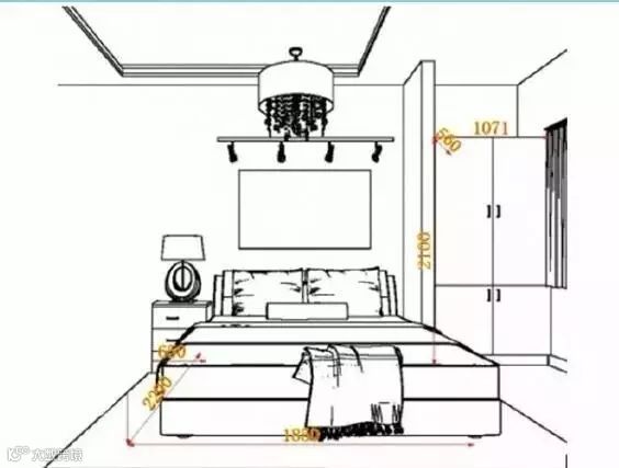 ▲可以选择床头台灯,直接放到床头柜上就OK,如果是吊灯,一定要在床尾下方10cm以外。