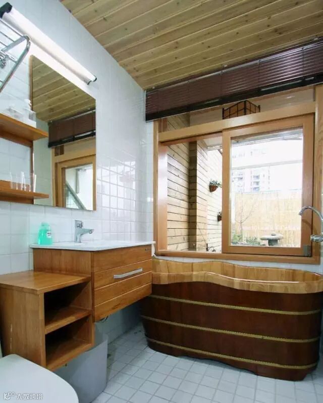 在靠窗的木桶浴缸里泡个澡
