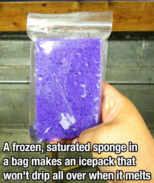 把浸湿的海绵放在封口的塑料袋里冻起来