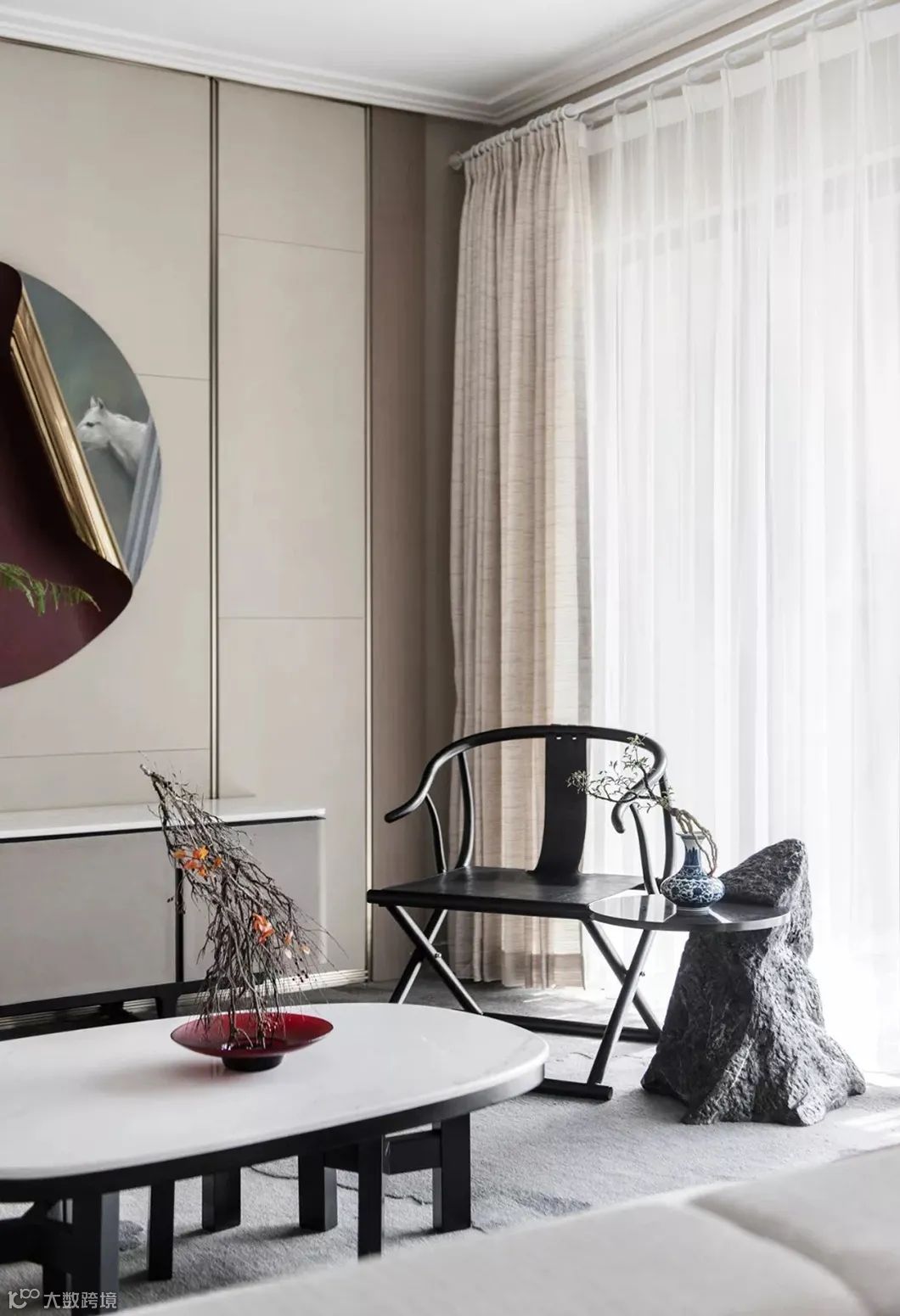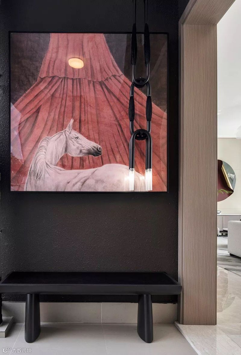 入户玄关以开放包容的立意,将东方意境的飘逸神韵与西方语言的放松自我进行了统一的表达,蕴含生命的张力,唤醒内心深处的依恋与回归。