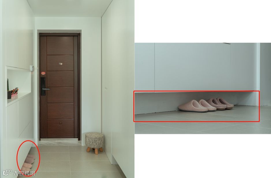 如果你家玄关有做玄关柜,那么一定还记得我之前说过的鞋柜底部留空。