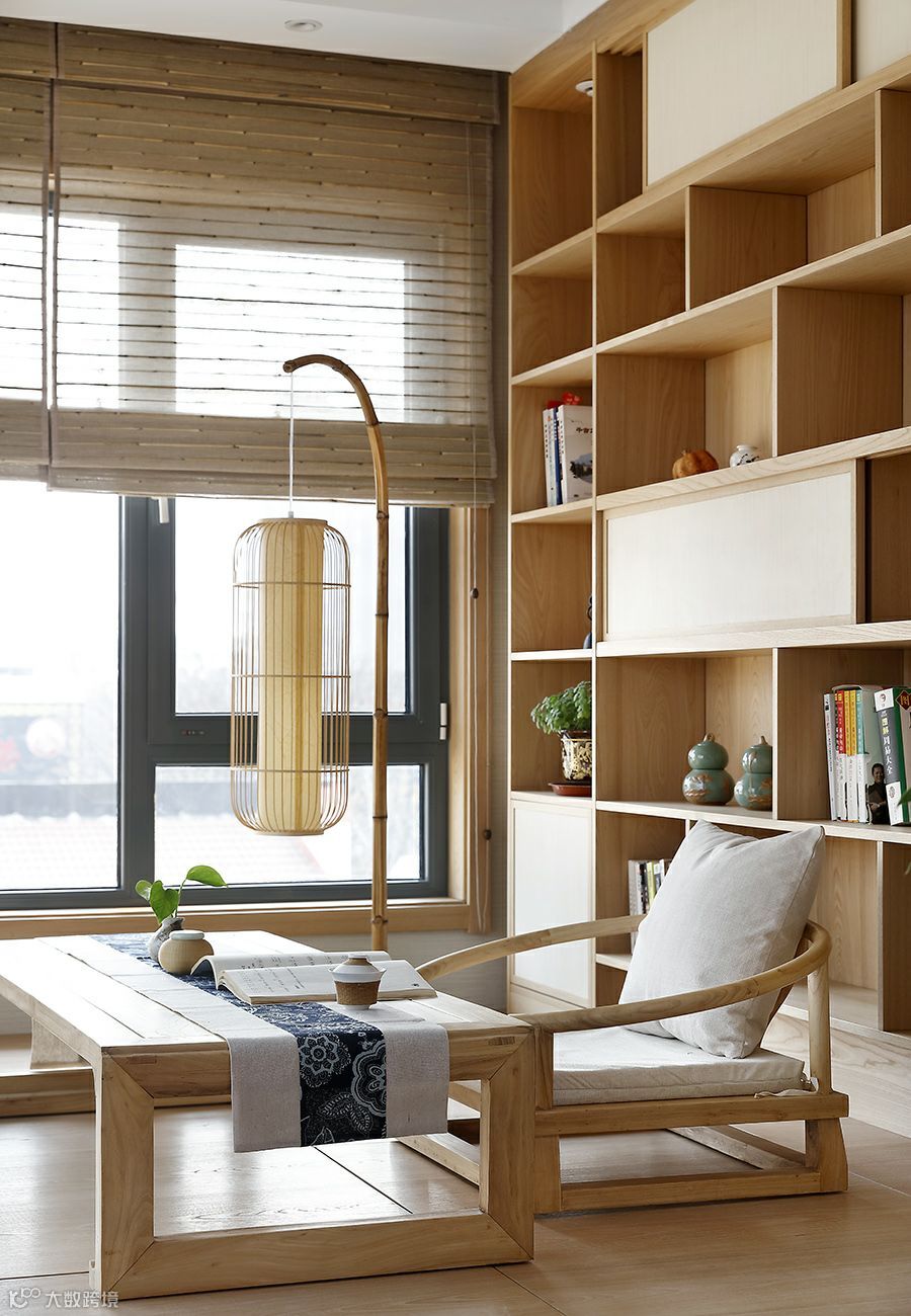 而在榻榻米之上,有中式和日式的两种风格的茶室家具供你选择。中式则是木或竹,日式则是蒲团或者软垫,非常惬意。