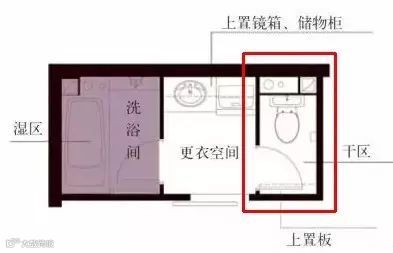 作为卫生间最干的区域,单独划分出来最有必要了。一般需要1.8 × 0.8m的尺寸,也就是说1.5㎡左右就可以有一个独立卫生间。