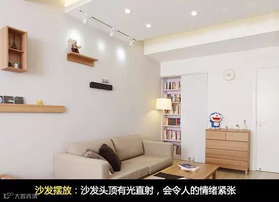 由于有时沙发范围的光线较弱,不少人会在沙发顶上安放灯饰(灯饰装修效果图),例如:藏在天花板上的筒灯,或显露在外的射灯等,因太接近沙发,灯光从头顶直射下来,就环境设计而言,沙发头顶有光直射,会令人的情绪紧张,头昏目眩,坐卧不宁。如果将灯改装射向墙壁,则可略为缓解。