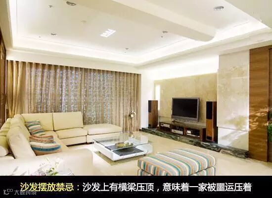 客厅不同于卧室(卧室装修效果图),若睡床有横梁压顶,受害的只是睡在床上的一两个人,但若是沙发上有横梁压顶,意味着一家被噩运压着,则受影响的就是一家大小,影响甚大,所以必须尽量避免。