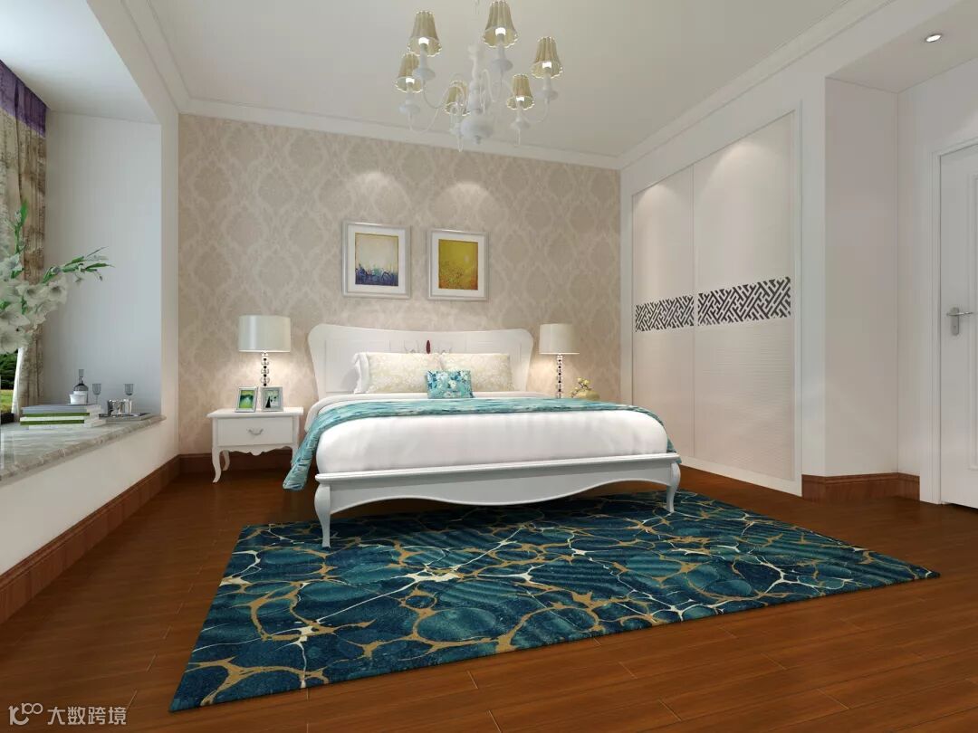 用蓝色地毯点缀