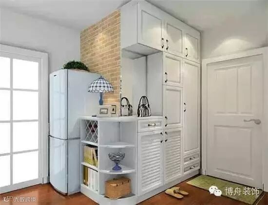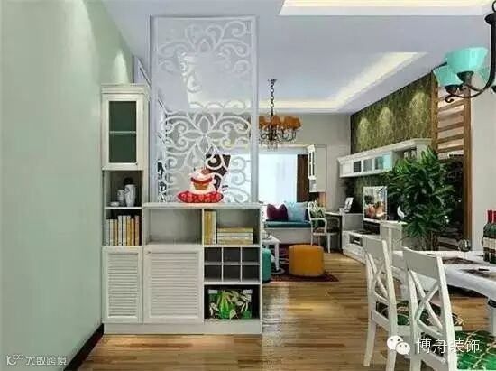 柜子 + 镂空屏风的组合,巧妙隔开空间,美美地把杂物收了。