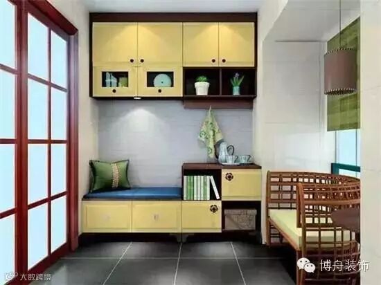 阳台里摆放太多的植物也不好。占用部分的空间做一组柜子,在家里增添一个休闲的去处。