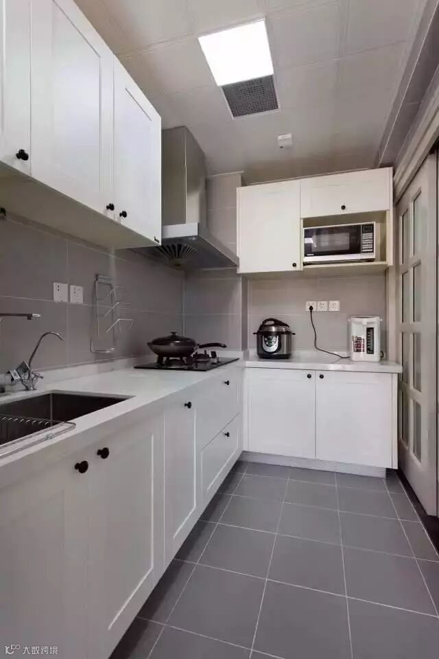 厨房在不到70平的小户型来说,算是比较大的了,业主刚好是个喜欢下厨的姑娘,这个厨房对她来说可是相当给力啊!