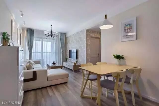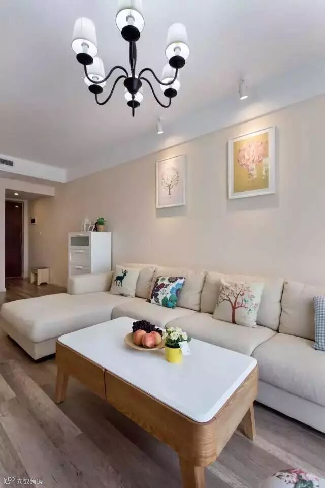 几何元素的电视背景墙,原木家具配上米色布艺沙发,简单又自然的小家就这样落成了。