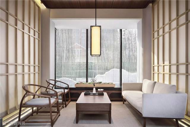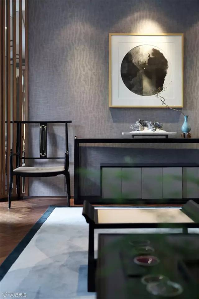 将留白手法运用在新中式的设计中,则减少了空间扑面而来的压抑感,并将观者的视线顺利转移到被留白包围的元素上,从而彰显了整个空间的审美价值。