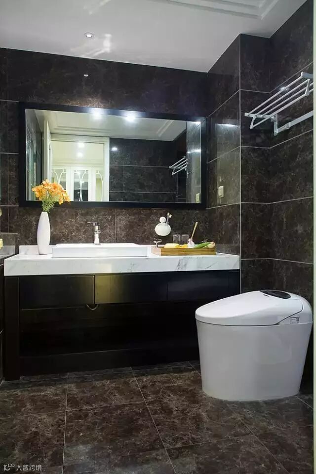 黑色石材的大面积铺贴,使得里外空间呈现出一种视觉跳跃。