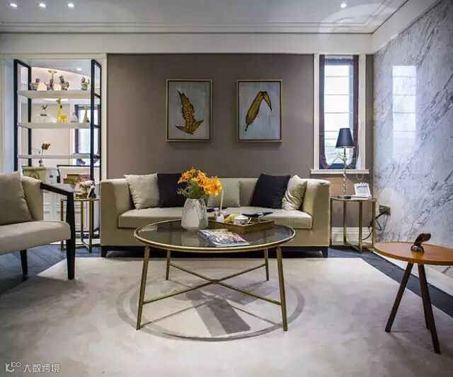 立面的形体塑造,顺着平面的构成一步就位,简易的金属家具、配饰及装饰画在凸显一种时尚品味外保留了一点奢华感。