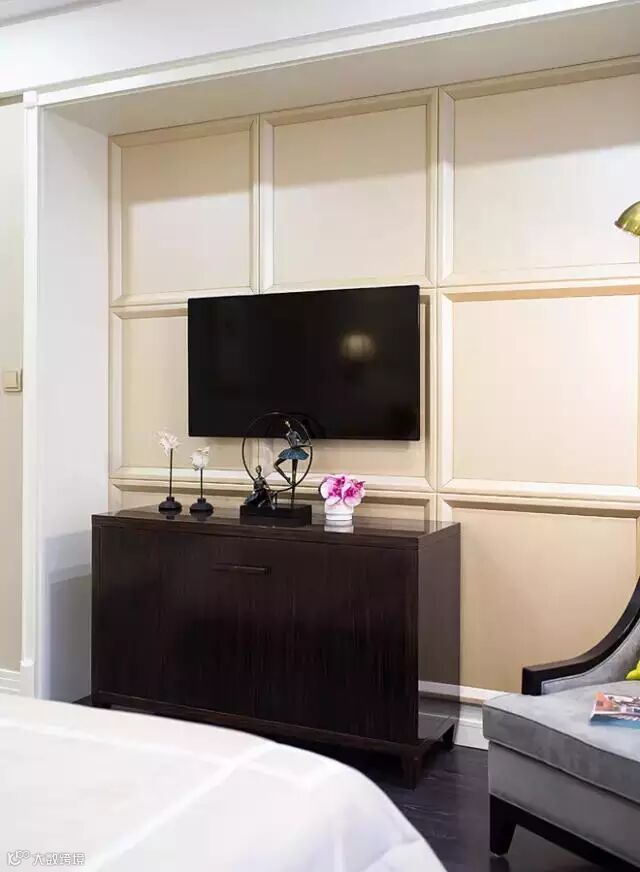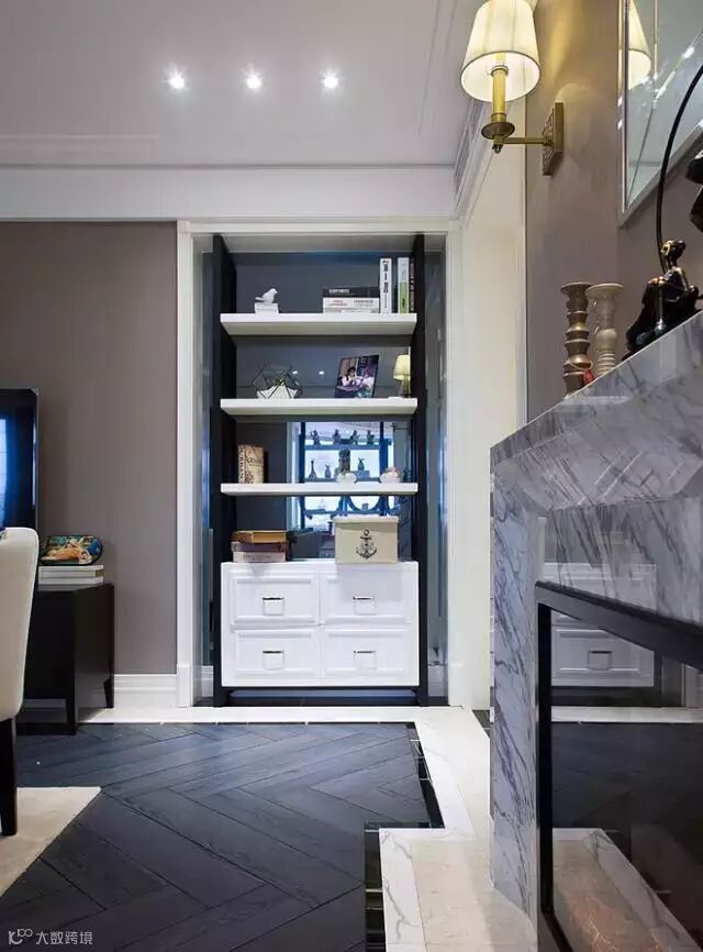 摆设柜黑镜的处理时让视觉有着更好的延伸。