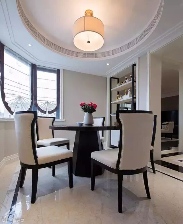 利用摆设柜当做隔断,在一处角落设计出了餐厅空间。