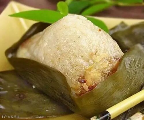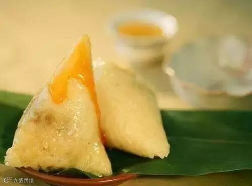 它由芭蕉叶包成方锥形,糯米中有咸蛋黄、叉烧肉、腊肉、红烧鸡翅等,热粽剥开,先有芭蕉和糯米的清香,后有肉、蛋黄的浓香,个头也非常大哦。