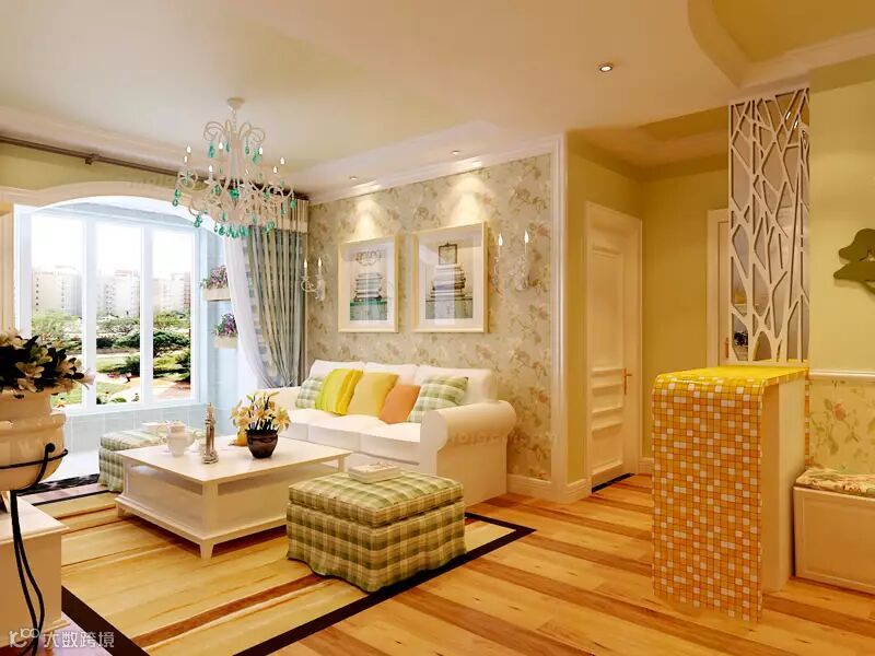 在客厅墙纸的选择上,与欧式、美式田园风格喜欢花色偏大、色彩明快的墙纸不同,韩式墙纸总是离不开小碎花的主题,花色是内敛低调的,不喧宾夺主。