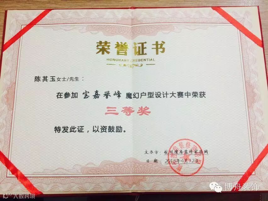 经过一个多月的激烈角逐,由搜房家居集团承办的“多30%,多无限可能”——宝嘉誉峰魔幻空间设计大赛终于落下帷幕。博舟装饰设计师陈其玉在70多位参加比赛的设计师中脱颖而出,荣获三等奖。