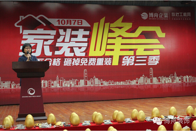 10月7日,博舟装饰继3.15消费维权日活动后,携手知名第三方公信力平台--放心工程网与杭州世邦装饰、大宅门国际装饰设计公司等杭城多家知名装饰公司,再次回馈广大业主,举办家装峰会。活动坚持秉承博舟的榔头精神--“装修不合格,砸掉免费重装”,努力为业主做到“放心工程,快乐装修”,100%口碑积累,现场新老客户云集,活动气氛火热。