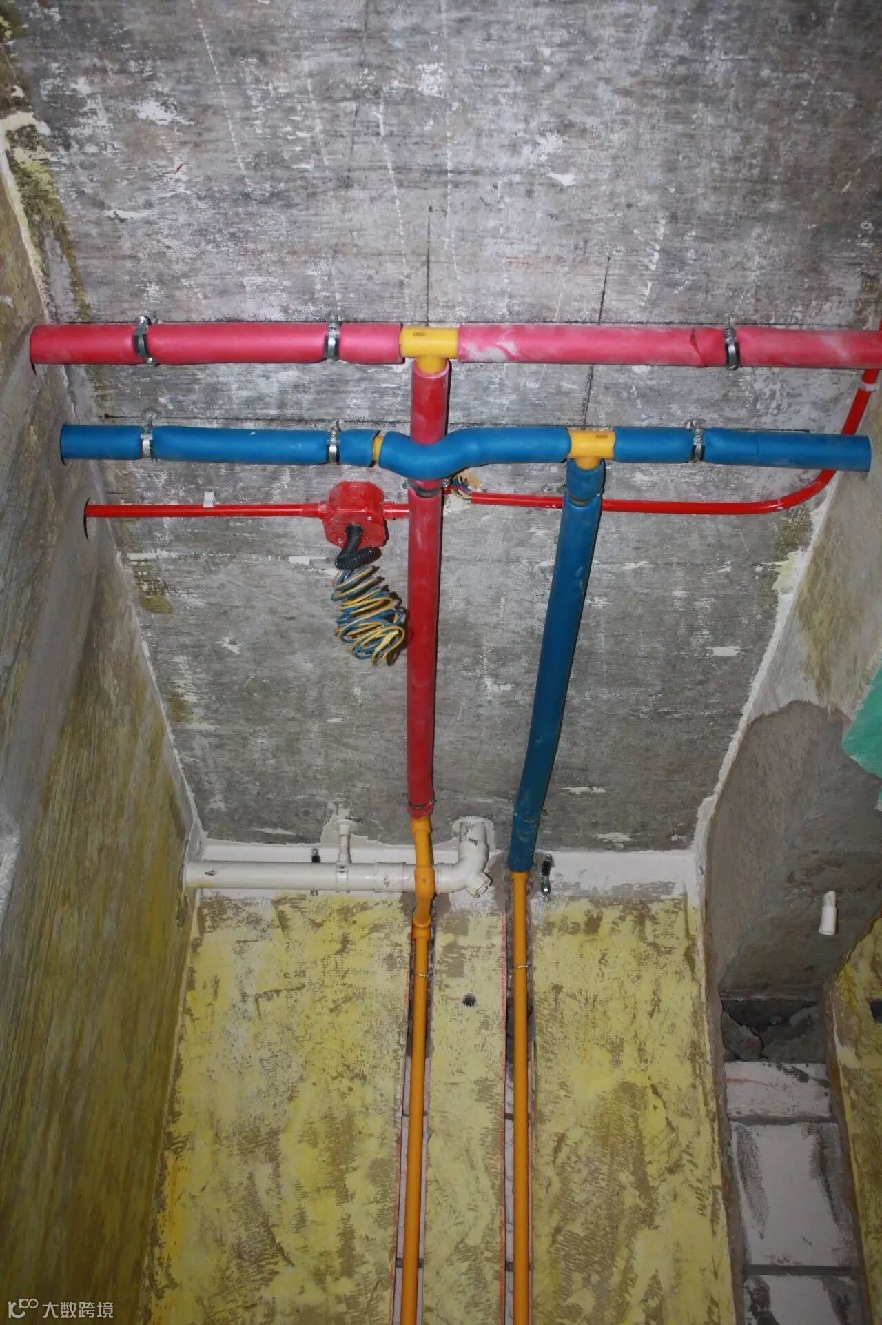 水管走顶冷热水管分色,左冷右热,上热下冷