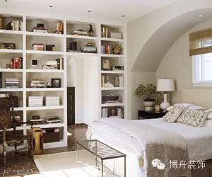 在小空间的墙面要尽量留白,因为为了保障收纳空间,房间中已经有很多高柜,如果在空余的墙面再挂些饰品或照片,就会在视觉上过于拥挤。如果觉得墙面缺乏装饰而缺少情趣,可以选择房间内主色调中的一个色彩的饰品或装饰画,一定要在色调上不要太出格,不要因为更多色彩的加入而让空间杂乱。适当地降低饰品的摆放位置,让它们处于人体站立时视线的水平位置之下,既能丰富空间情调,又能减少视觉障碍。