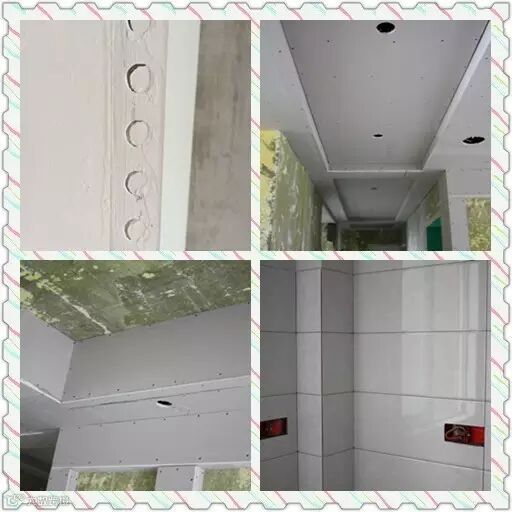 瓦工结束,贴砖整齐美观,吊顶边角整版剪切,坐等油漆。