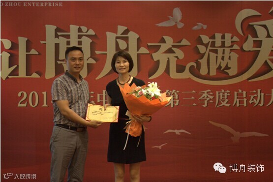 博舟第三季启动大会上,我们邀请到了来自浙江省装饰协会秘书长贾女士,博舟对于这次贾女士能够在繁忙的工作中抽出时间亲临现场,表示最衷心的感谢。同时也非常荣幸的能够聘请贾秘书长作为博舟装饰的高级顾问。
