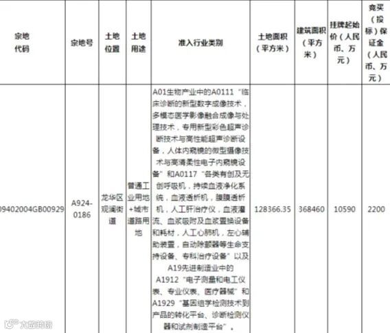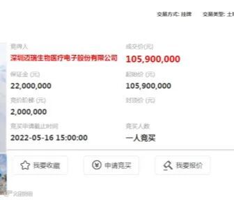 5月18日,梅观创新走廊福城观澜产业地块土地整备项目A924-0186宗地在深圳交易集团有限公司(深圳公共资源交易中心)成功挂牌出让,由深圳迈瑞生物医疗电子股份有限公司以1.059亿元竞得。