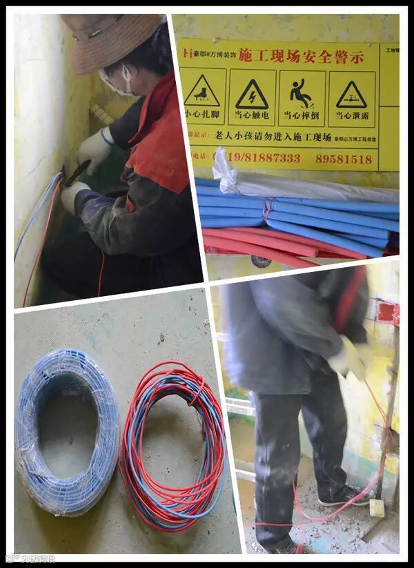 这一户是正在施工阶段,水电工正在换线,材料堆放整齐
