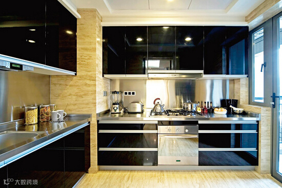 近似于黑色的墨绿色地板砖,铺设在这款清新的卫生间内,更加衬托出卫生间的简约设计感。但是这样的地板砖颜色,搭配起来还是比较挑剔的,所以要慎搭。所以说,地板砖什么颜色好,是没有定论的,要依实际情况而定。复古气息十足的深棕色地板砖,与厨房内的深木色地柜和吊柜,营造出强烈的复古感。