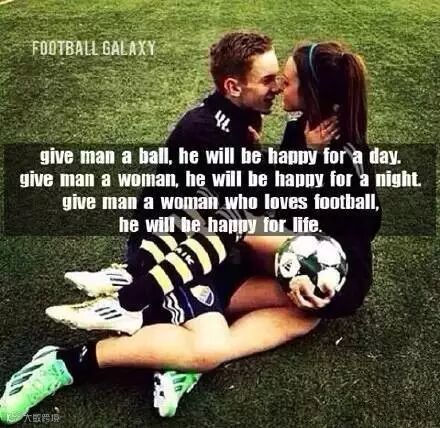 男球迷心中的梦想:给男生一个足球,他能开心一整天;给男生一位女票,他能愉悦一整夜;给男生一位爱足球的女票,他能幸福一辈子~