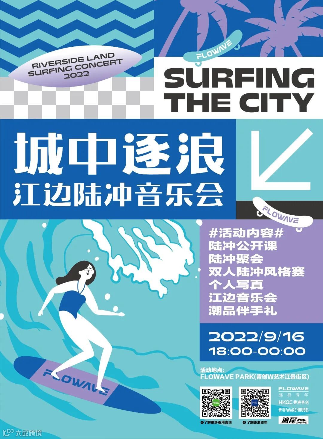 FLOWAVE PARK(青创W艺术江景街区)是FLOWAVE x 香港青创共同运营的「广州陆地冲浪主题公园」,在这里可以尽情地玩耍陆冲和欣赏优美江景,这里是FLOWAVE的秘密基地,城市浪人的精神角落!