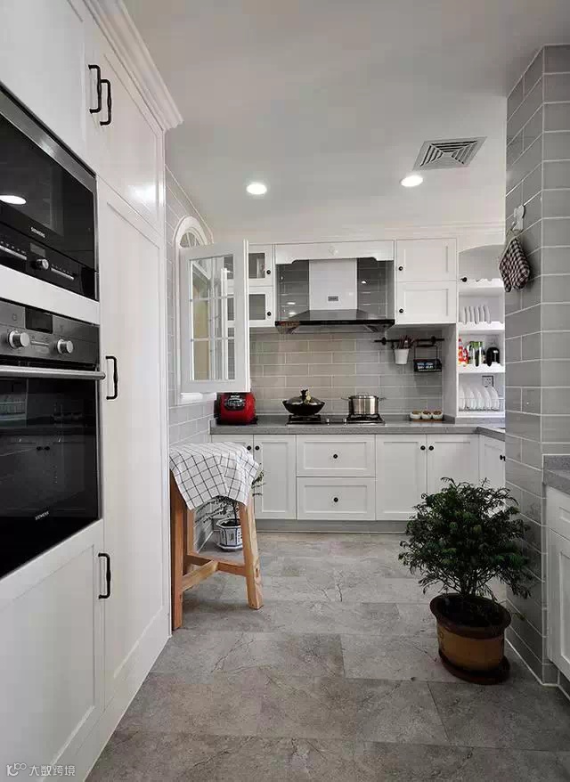 厨房间就选用了白和灰的主色调,给人一种冷静的感觉。