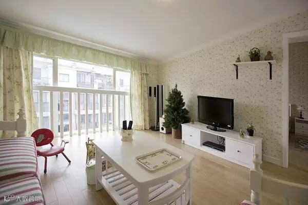 楼上除了主卧与儿童房之外,还有个小客厅哦,如果说1楼是以地中海为主,那么2楼就是以田园风为主打了,从充满小碎花的壁纸上应该就不难看出了吧,简约的白色家具也让这间客厅透出一种小清新在其中。