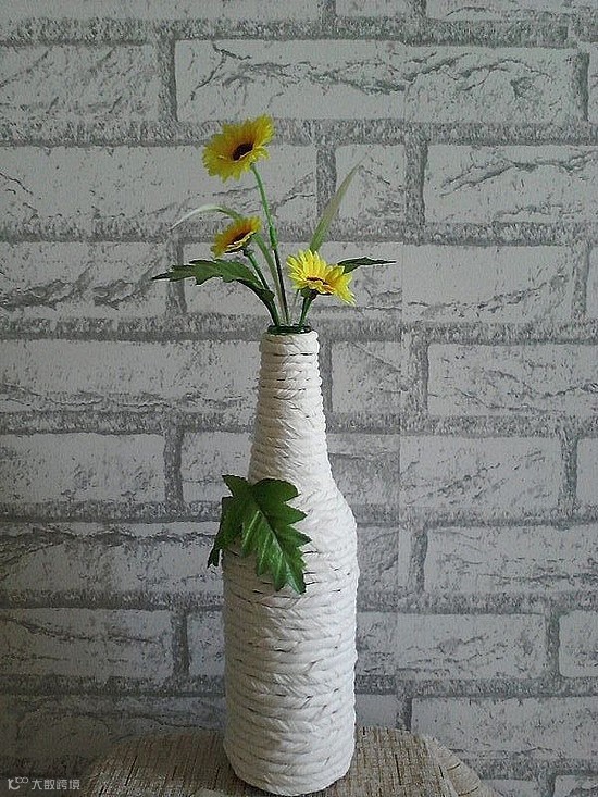 38.餐桌摆件:手工diy啤酒瓶华丽变身田园花瓶。