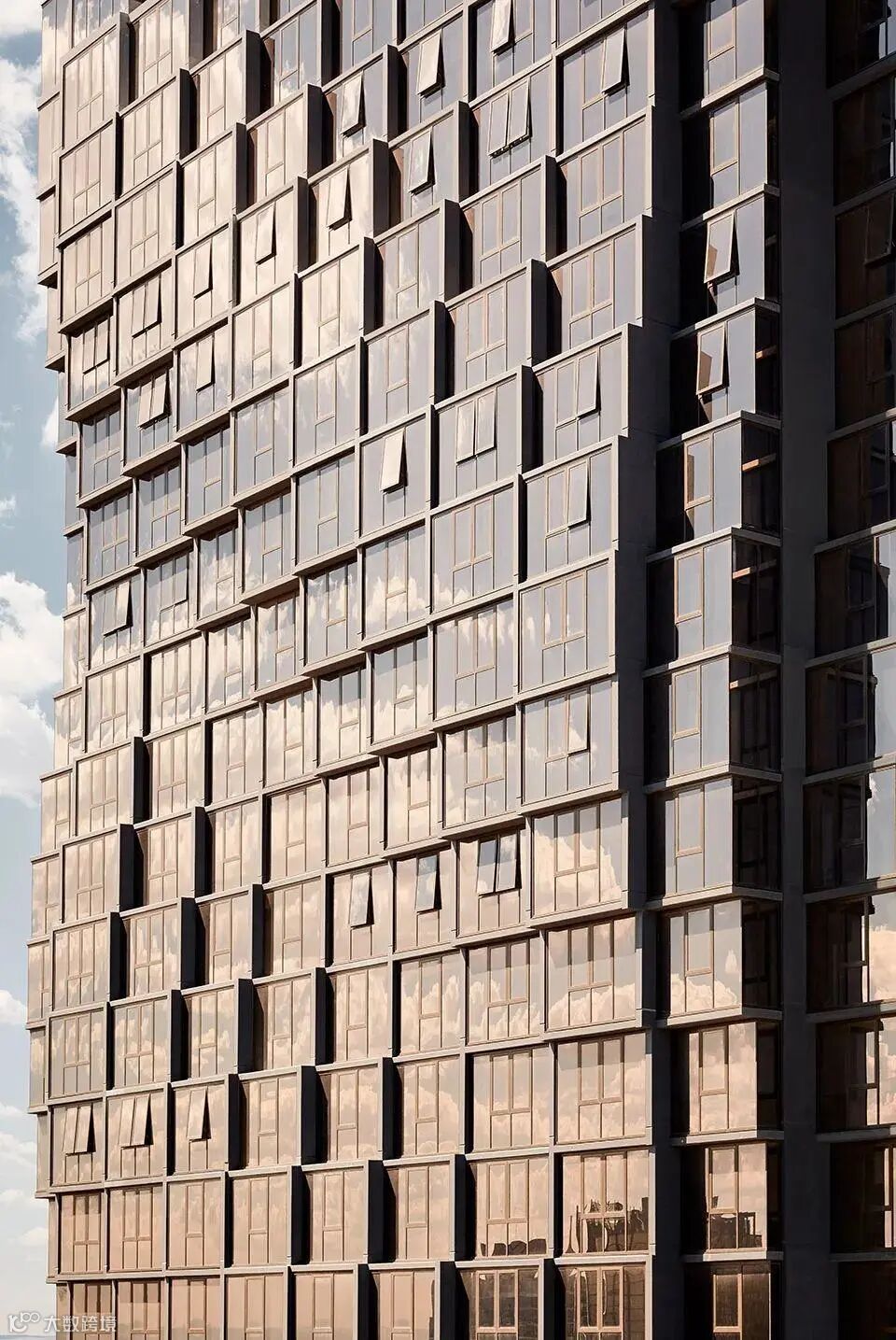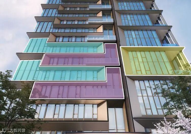 玻璃和铝板的表面经过处理后,有一种金属的光泽感,在阳光的照射下会呈现独有的贵气,使整个建筑立面灵动、新颖、有质感。
