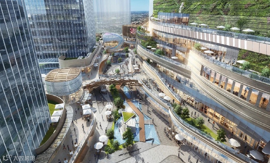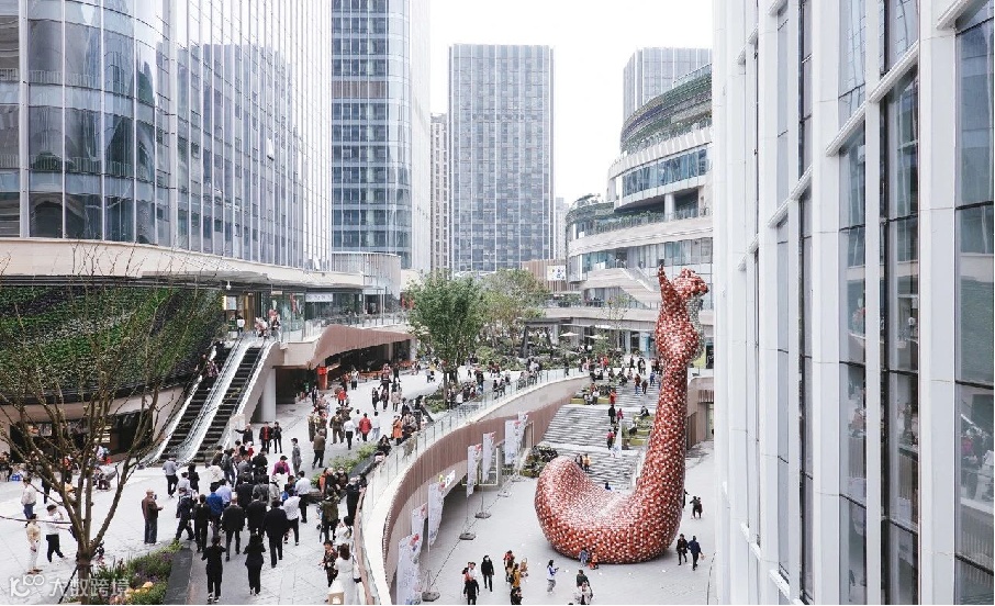 商业一般处于城市中心、副中心、繁华地段、带动城市发展的区域,如何在车水马龙的地段,营造出具有良好使用价值、具有精致感、体验感的空间。商业建筑固然重要,但是景观设计更是起到画龙点睛作用。