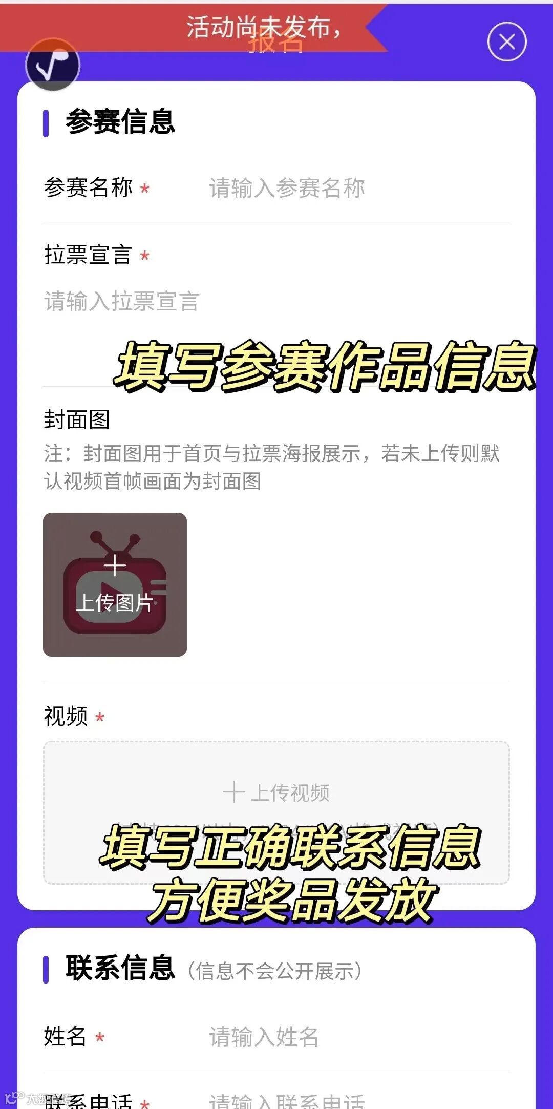 1)参赛者按照要求录制好短视频,将短视频作品上传至小程序上,填好报名信息,注明奖品收件地址及信息。