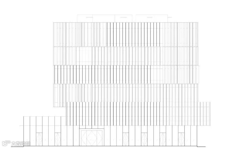 建筑立面的铝板以750mm宽度为模数,按设计逻辑有序分布,从幕墙竖杆间距到天花吊顶造型分缝,均严格遵守此基础模数。