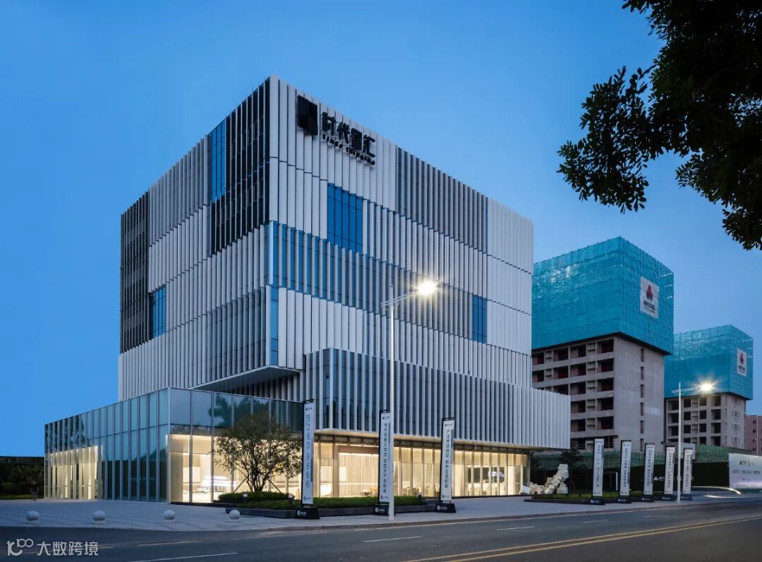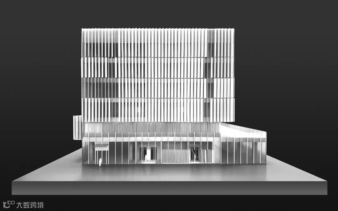 通过错动、咬合的设计手法完成建筑立面的基本形态,化解了建筑体量的沉重感。材质上采用银灰色铝板和中空玻璃,营造科技感十足的效果。