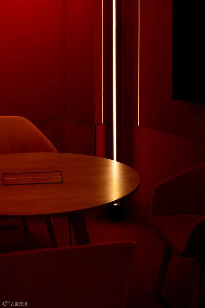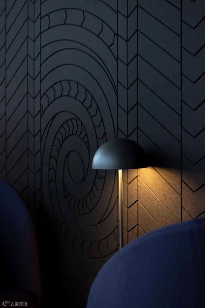 从主入口到主要的接待和流通空间,提供了一条连续的弧形通道,这是一面特色投影墙,当地的视频艺术作品和风景在这里被全天投影。