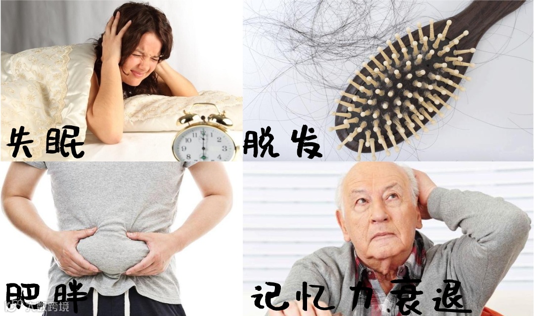 失眠导致内分泌失调,诱发肥胖、脱发,掉发一抓一大把。还会导致记忆力下降、老年痴呆...