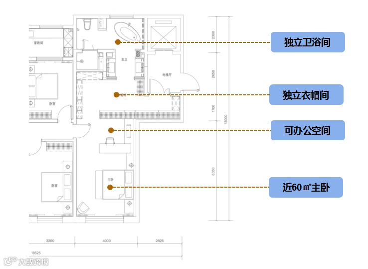 主三房设计,真正满足高端人群需求;