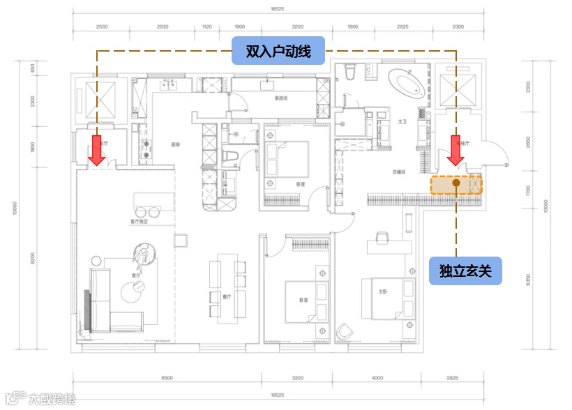 双入户动线,兼顾私密性与仪式感