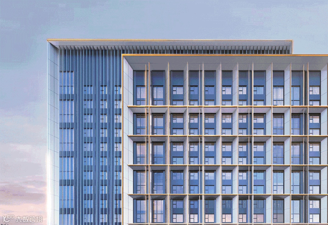超白玻璃幕墙结合银灰色铝板,增强了建筑的通透性;金属格栅的设计,则打破了立面对称的标准,将整座建筑进行了分割,光影交错间更好地表达了结构的韵律;最后辅以香槟色线条点缀,增加建筑的轻盈感,构筑高雅而艺术的视觉审美体验。