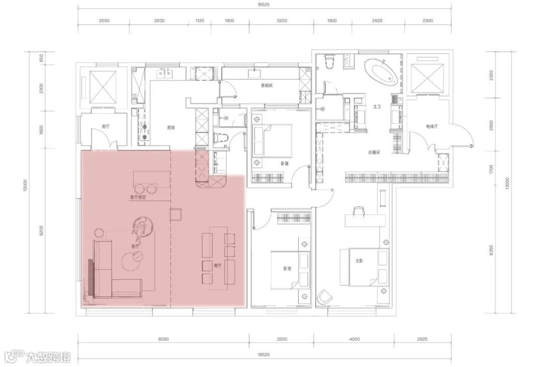 约65㎡的270°边厅,“无边界”的居住体验